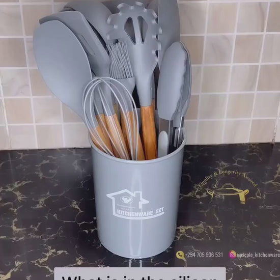 Silicone Cooking Utensils Set of 11pcs with Holder.